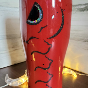 “WelSun” is a stunning Crimson Crawfish fishing lure tumbler. Custom designed specifically for the passionate Bass fisherman. No two are exactly alike. Combines functionality and style keeping drinks hot or cold. Designed and individually painted and crafted by Artisan/Angler. Slight variations will occur.